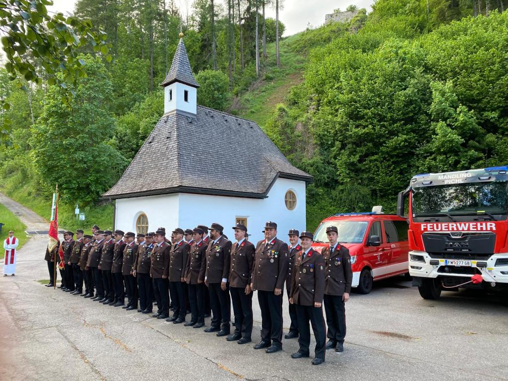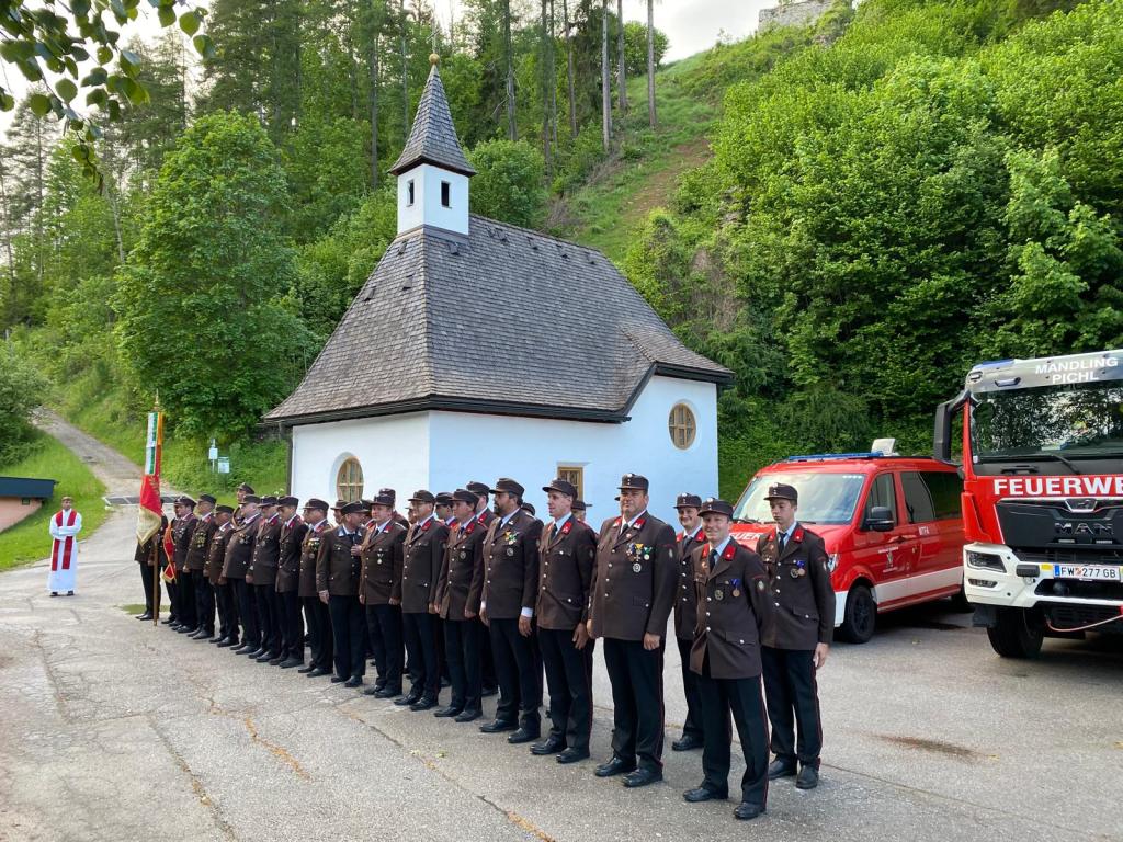 Am Freitag, den 17.05.2024 fand heuer unser Floriani Kirchgang statt. Unser Pfarrer, Mag. Andreas Lechner, hielt für uns eine Messe in der Johanneskapelle in Mandling ab. Nach dem Kirchgang wurde Matthias Mitterwallner angelobt und in den Aktivstand der Feuerwehr aufgenommen und Bernhard Sieder zum Oberfeuerwehrmann befördert.