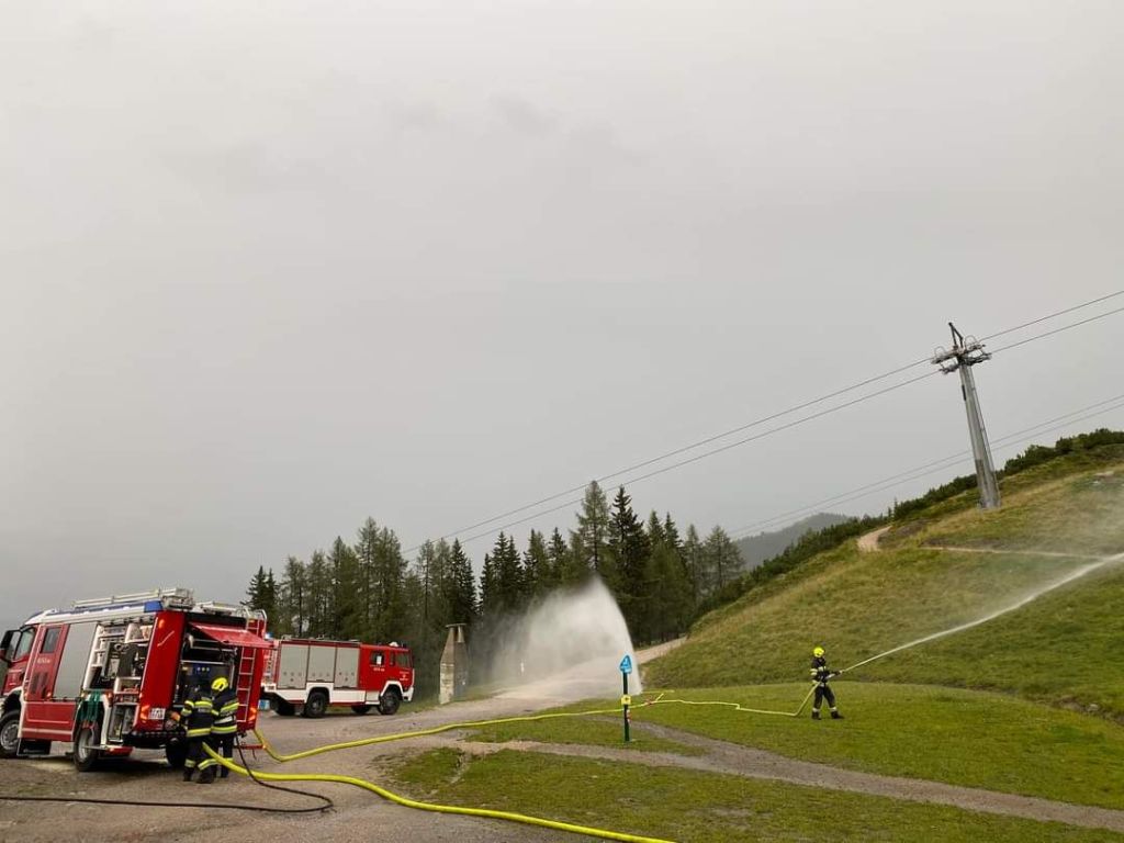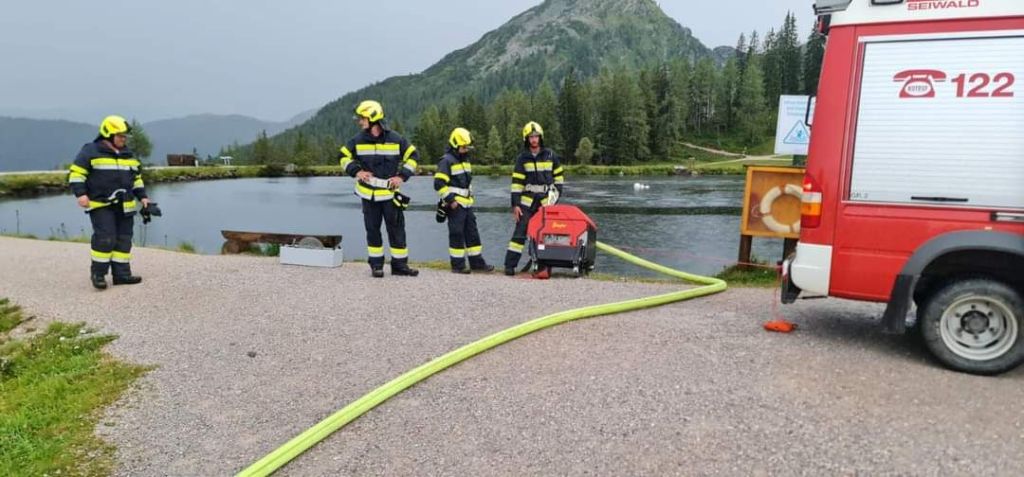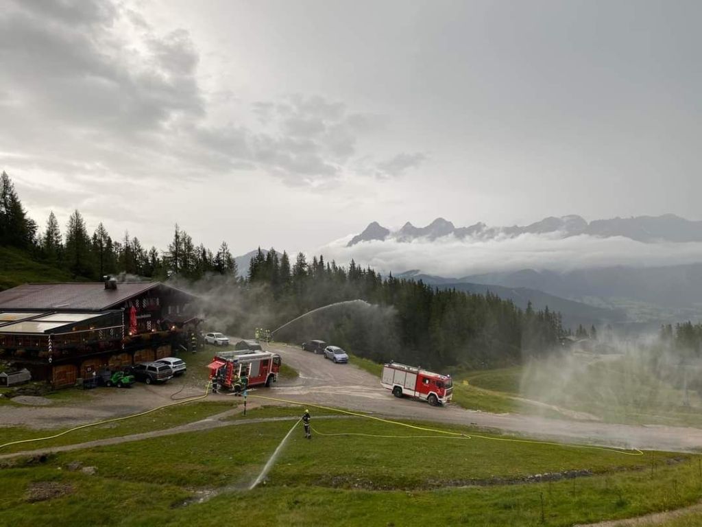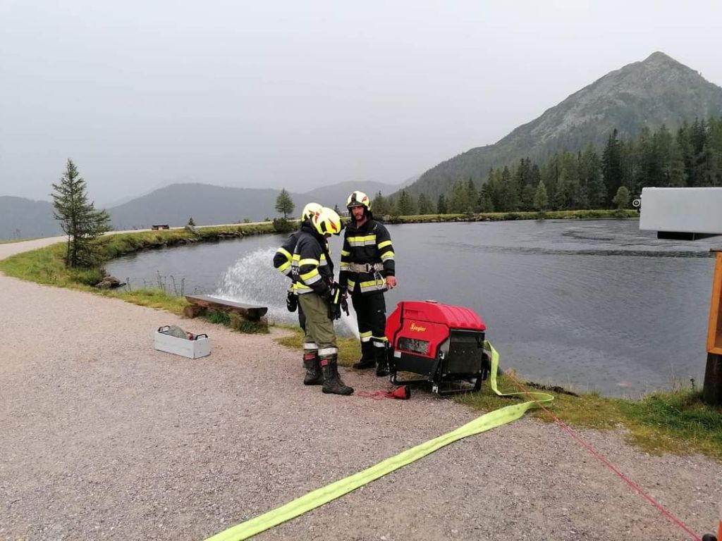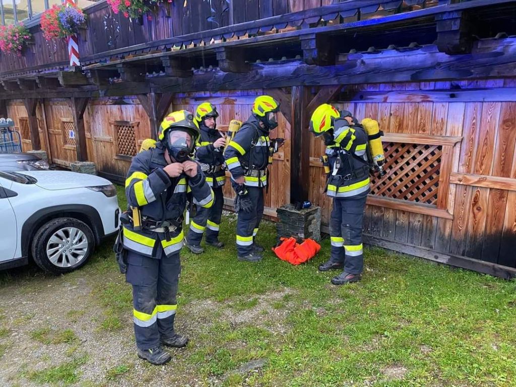 Mittels schwerem Atemschutz wurde ein Innenangriff gestartet und nach den vermissten Personen gesucht. Wasserversorgung wurde über den Speicherteich und die Schneeleitung hergestellt.