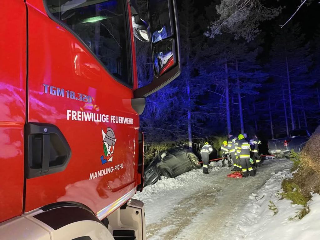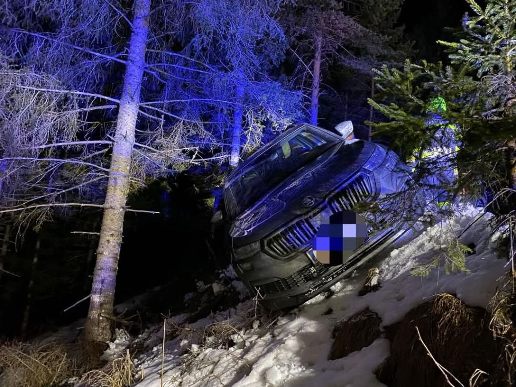 Ein PKW war aufgrund der glatten Fahrbahn von der Straße abgekommen und in der Böschung hängengeblieben.