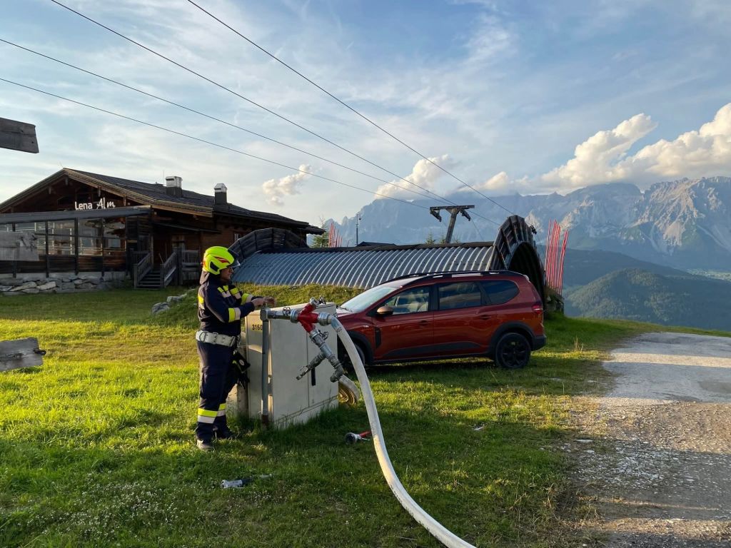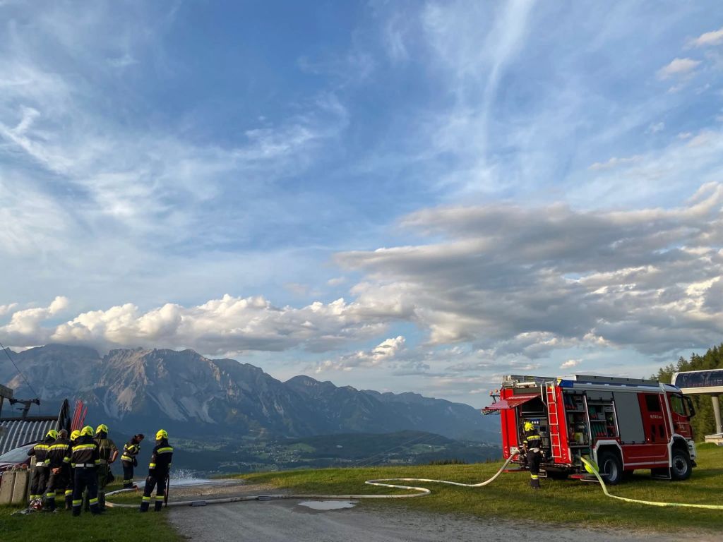Bei unserer Augustübung ging es diesmal auf die Reiteralm zur Silverjet Gondel-Berstation. Übungsannahme Brand bei der Bergstation.