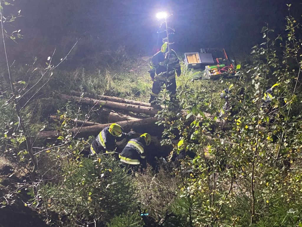 – Retten und versorgen einer Person die unter Holzstämme geraten ist mittels Hydraulischem Rettungsgerät und Hebekissen